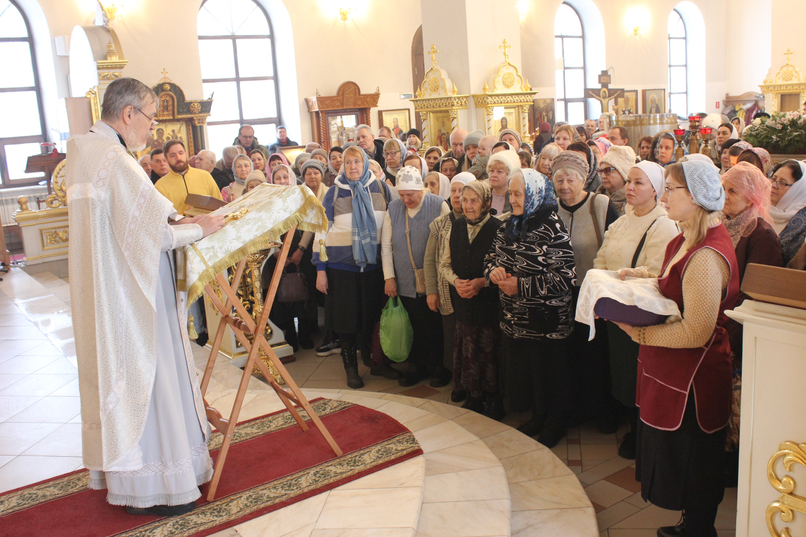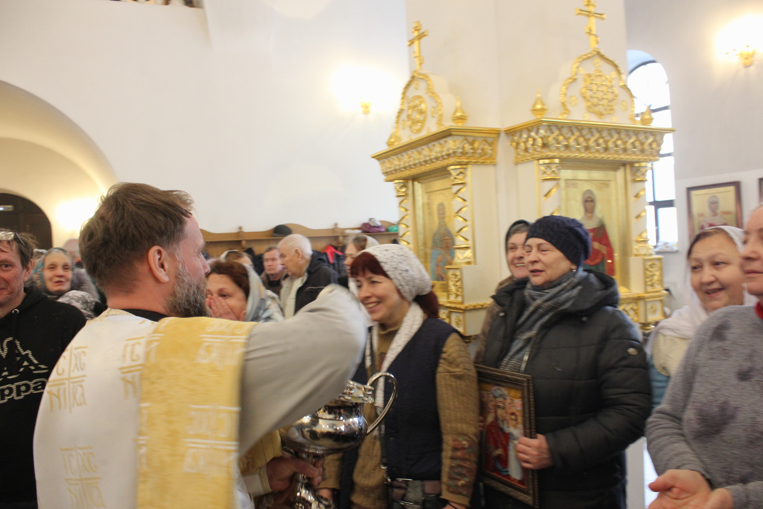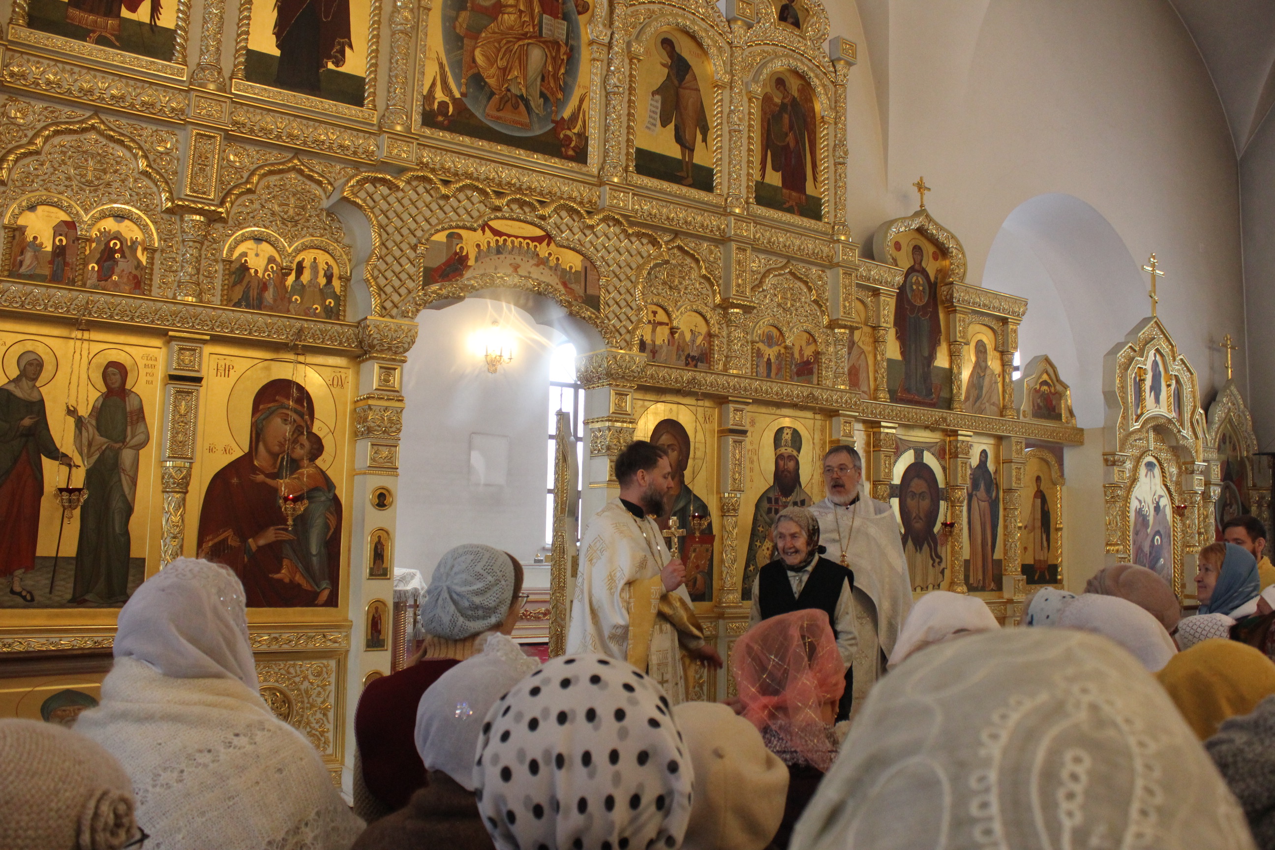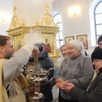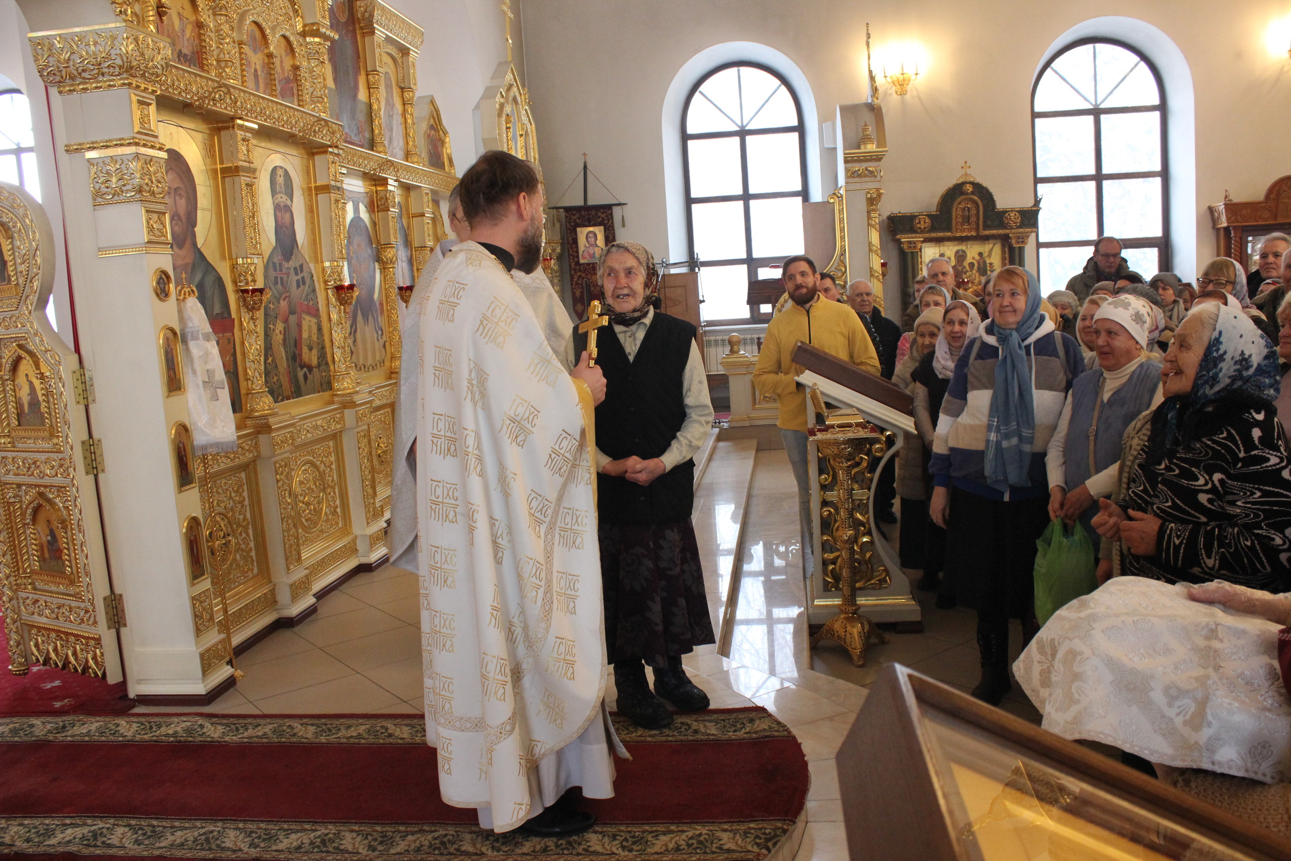 По окончании богослужения настоятель храма отец Сергий поздравил старейшую прихожанку прихода Александру с девяносто пятилетием.