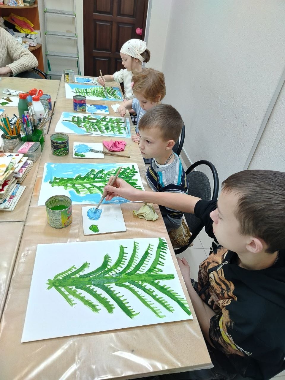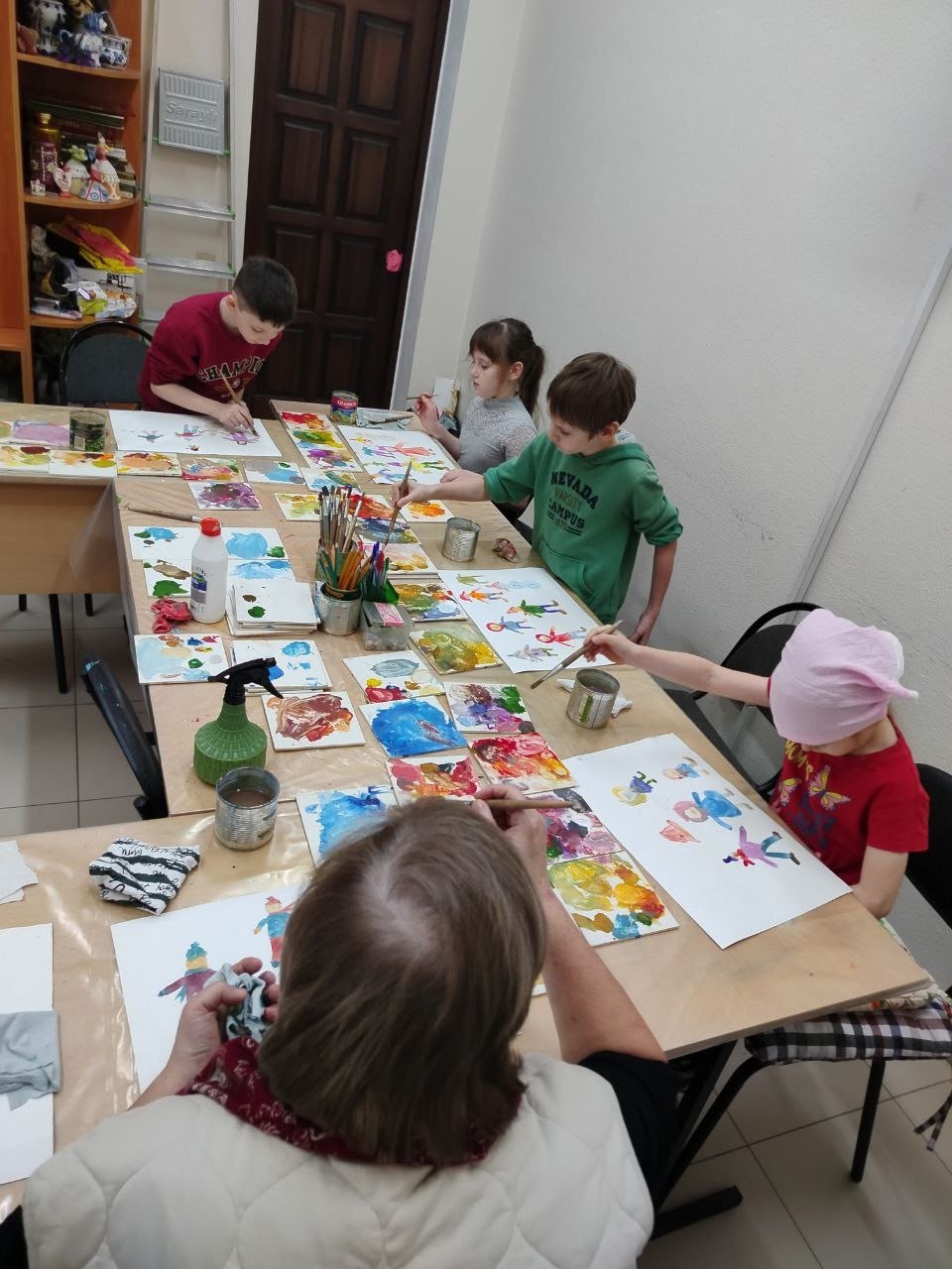 На занятиях по изобразительному искусству в младшей и средней группами рисовали свою семью.